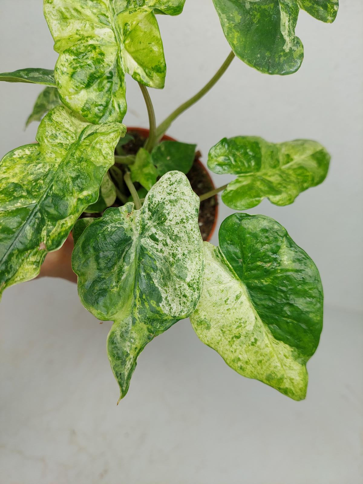 Ältere Blätter werden durch Neuere weiter nach außen gedrückt, wodurch sie runterhängen können. Wir empfehlen das Stützen mit einem Bambusstab oder Ähnlichem. Es kann vorkommen, dass solche Blätter während oder kurz nach Versand gelb werden.