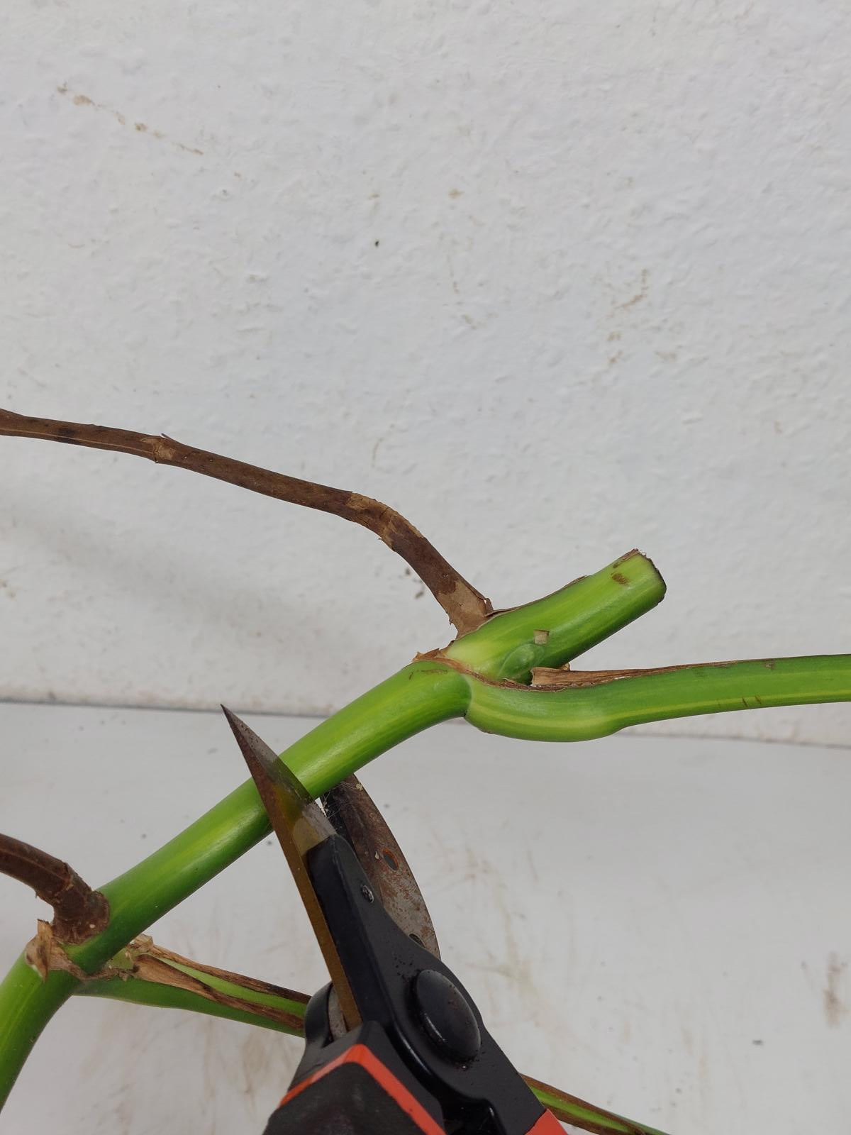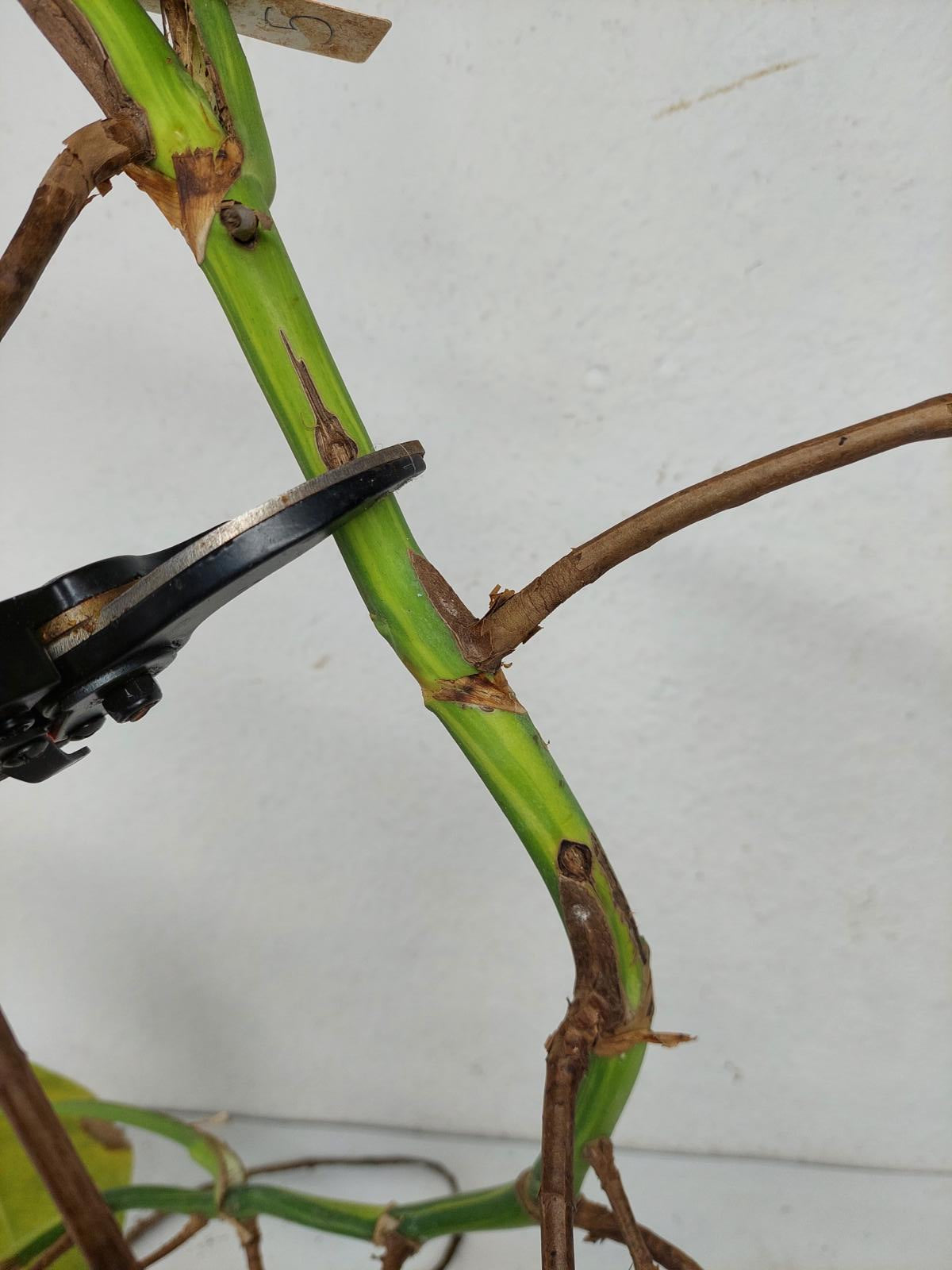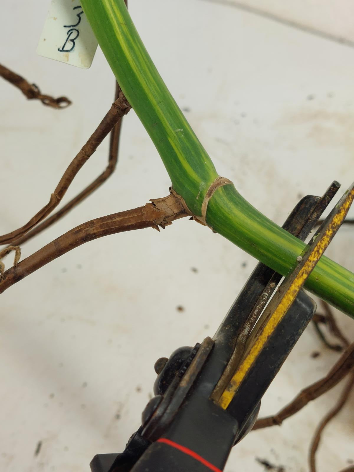 Du erhältst beim Kauf den auf den zugehörigen Bildern gezeigten Steckling. Es wird an den markierten Stellen geschnitten, wenn er sich noch an der Mutterpflanze befindet.