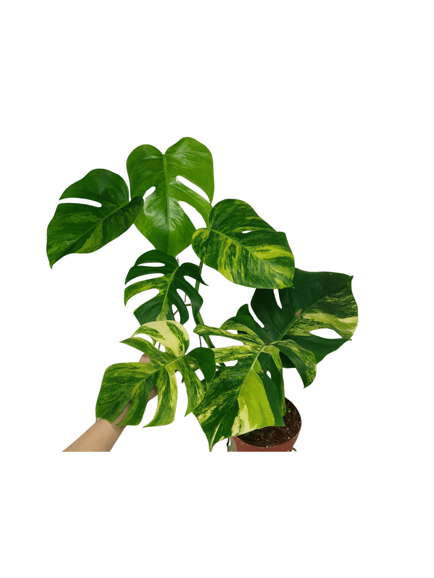 Bitte beachte: Es kommt bei Blättern mit viel Panaschierung häufig vor, dass sich die gelben Stellen vor, während oder nach dem Versand braun verfärben. Man kann die Pflanzen mit einem kühleren, aber hellen Standort unterstützen. Sobald die Pflanzen sich eingelebt haben, hört das Braunwerden bei den neuen Blättern auf. Wir können keine Erstattungen für braune Stellen anbieten.