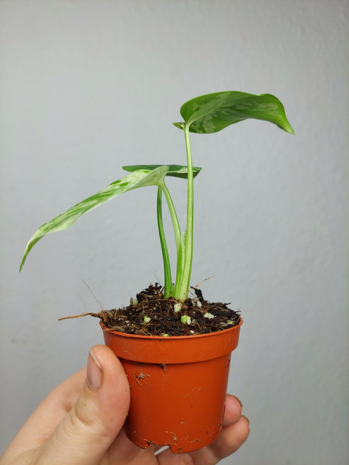 Diese Pflanzen wurzeln erst seit wenigen Wochen und werden bei uns noch bei hoher Luftfeuchtigkeit gehalten. Die Umgewöhnung an normale Zimmerbedingungen sollte langsam erfolgen.
