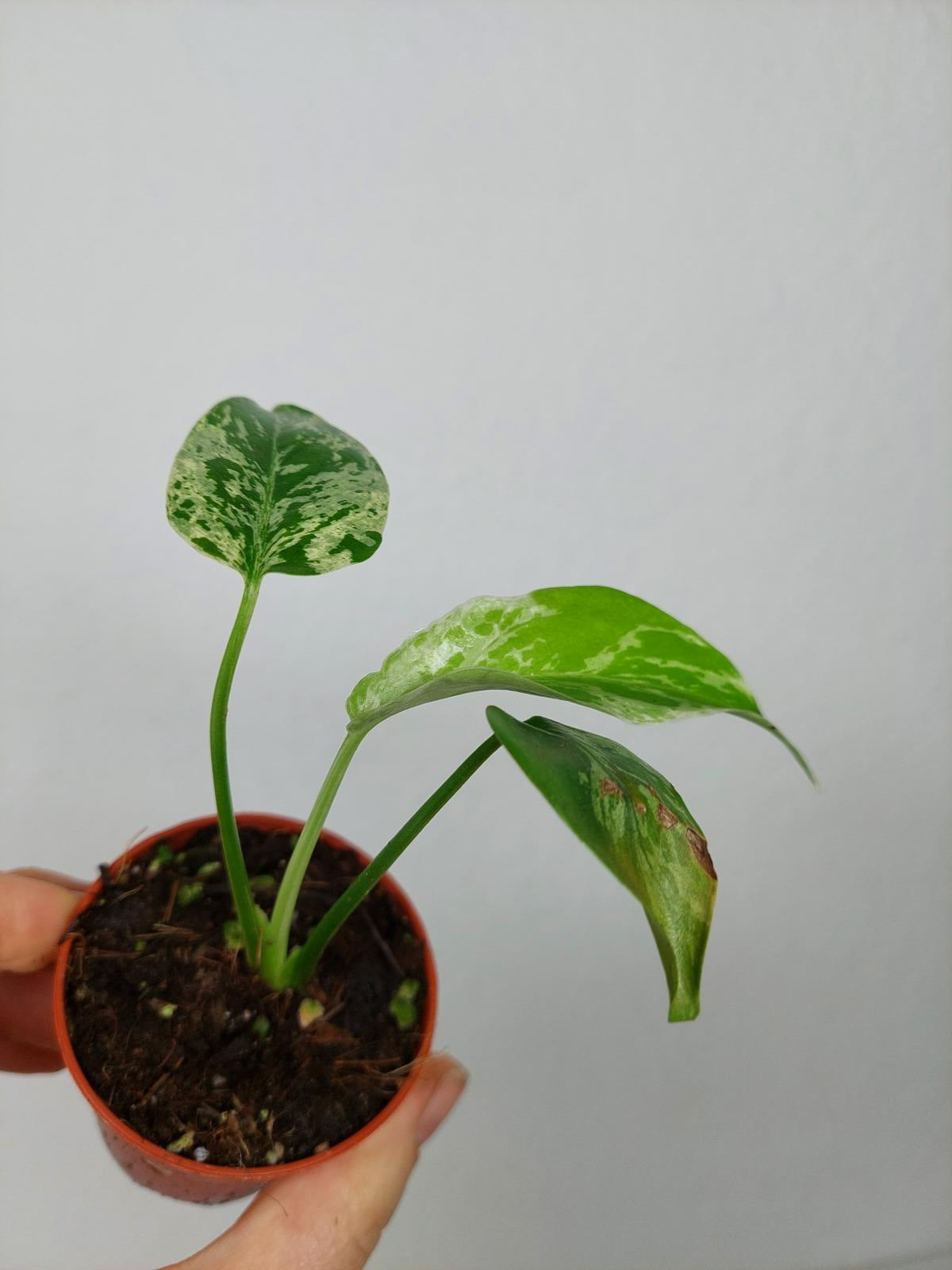 Diese Pflanzen wurzeln erst seit 2 Monaten und werden bei uns noch bei hoher Luftfeuchtigkeit gehalten. Die Umgewöhnung an normale Zimmerbedingungen sollte langsam erfolgen.