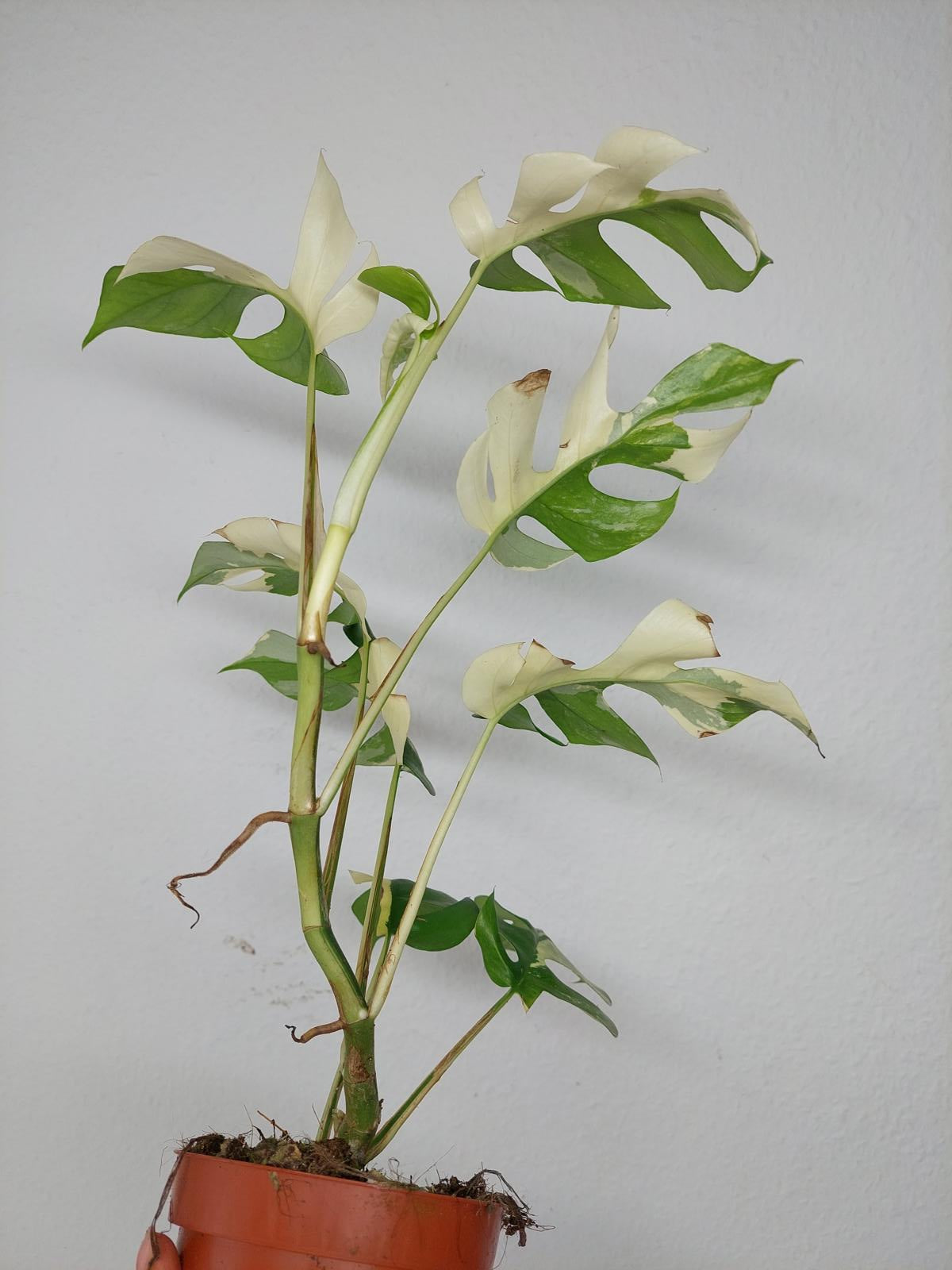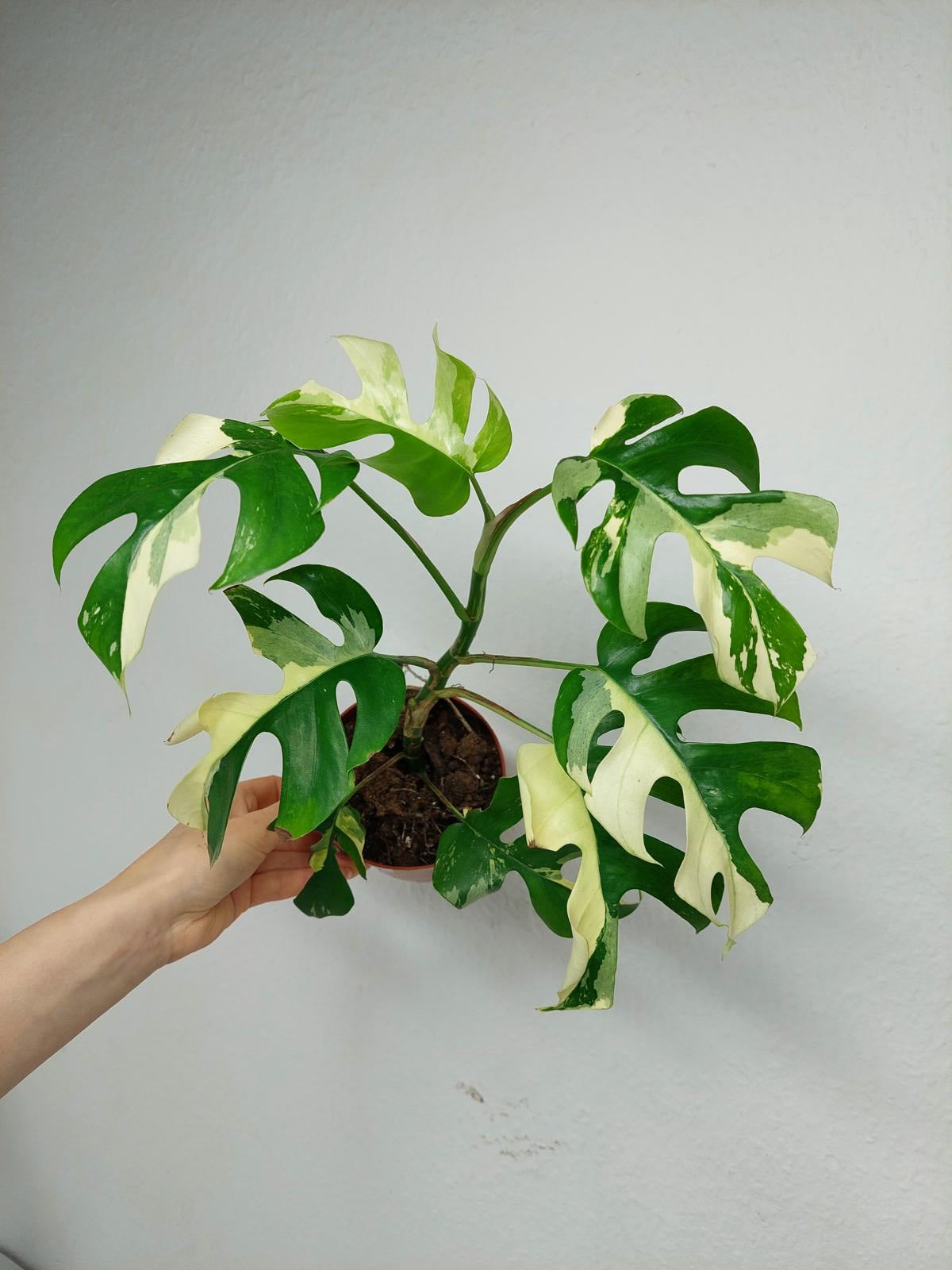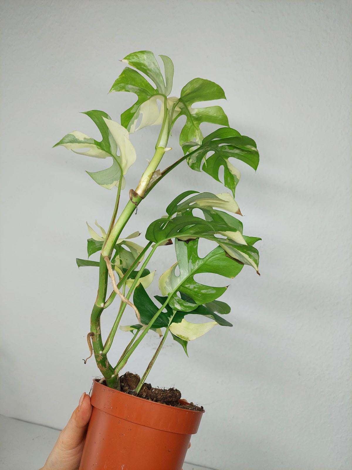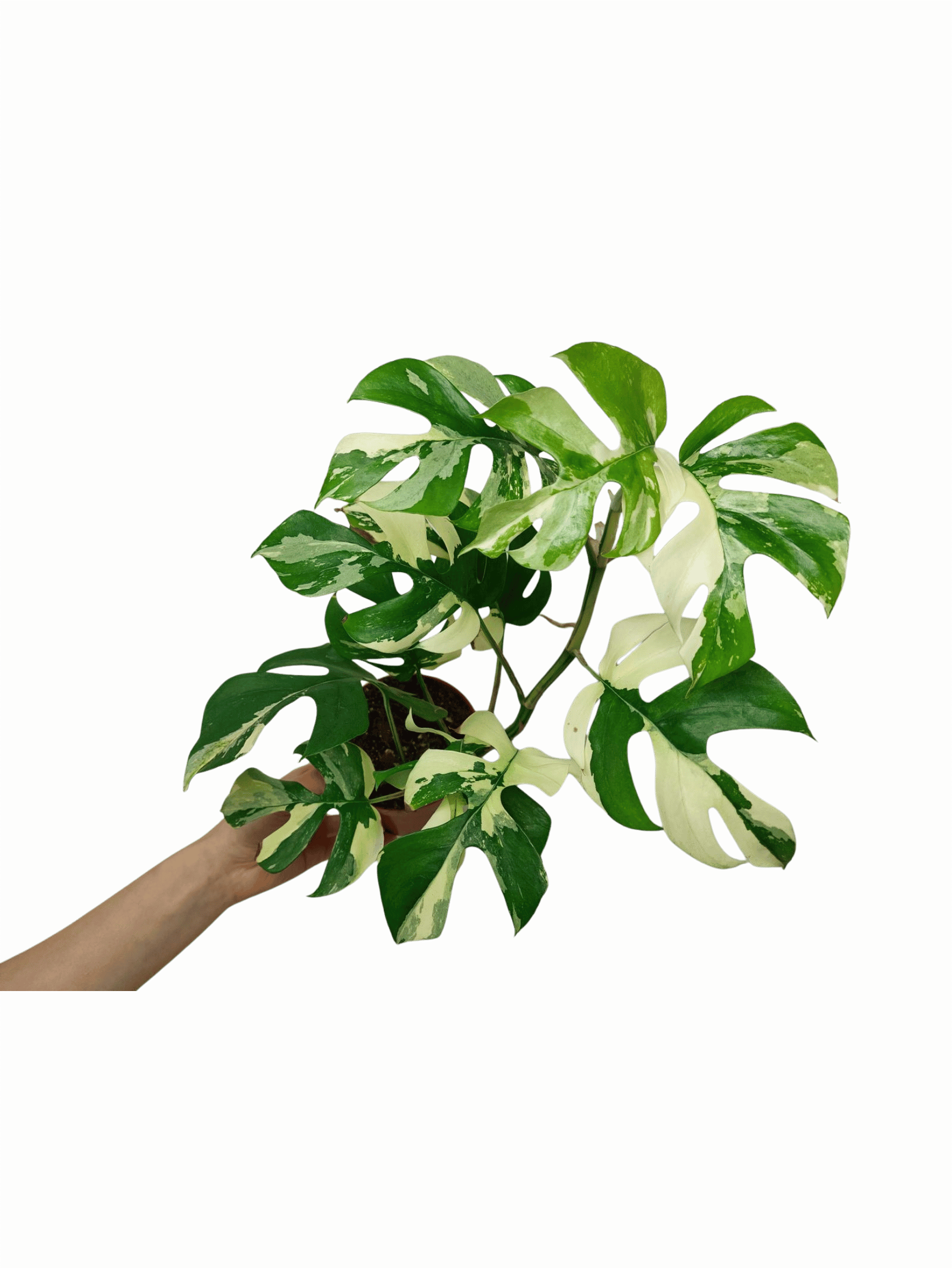 Bitte beachte: Es kommt bei Blättern mit viel Panaschierung häufig vor, dass sich die weißen Stellen vor, während oder nach dem Versand braun verfärben. Man kann die Pflanzen mit einem kühleren, aber hellen Standort unterstützen. Sobald die Pflanzen sich eingelebt haben, hört das Braunwerden bei den neuen Blättern auf. Wir können keine Erstattungen für braune Stellen anbieten.