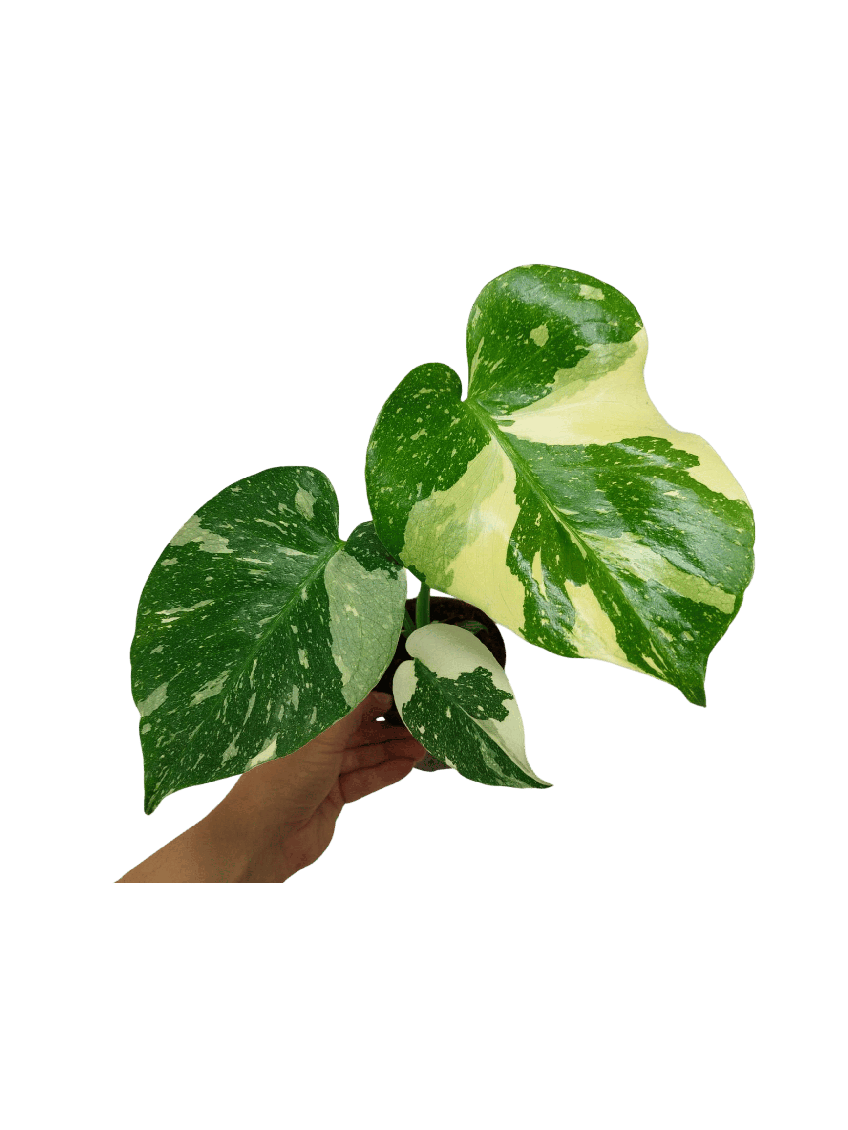 Bitte beachte: Es kommt bei Blättern mit viel Panaschierung häufig vor, dass sich die weißen Stellen vor, während oder nach dem Versand braun verfärben. Man kann die Pflanzen mit einem kühleren, aber hellen Standort unterstützen. Wir empfehlen die Zugabe von Siliziumdünger. Sobald die Pflanzen sich eingelebt haben, hört das Braunwerden bei den neuen Blättern auf. Wir können keine Erstattungen für braune Stellen anbieten.