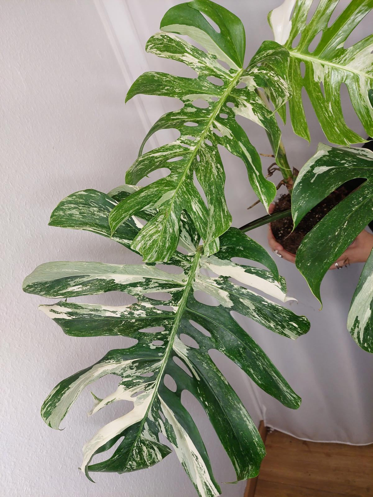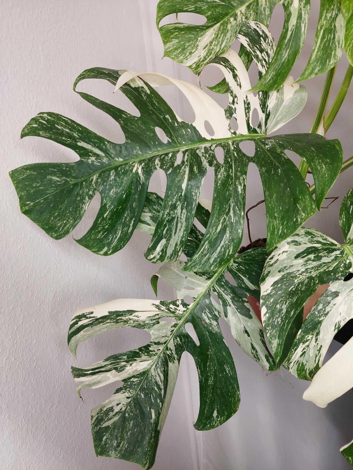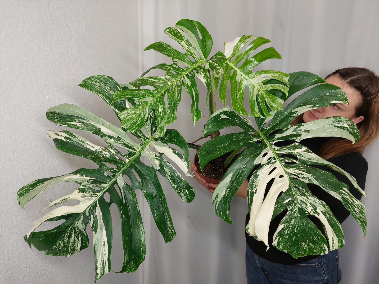 Bitte beachte: Es kommt bei Blättern mit viel Panaschierung häufig vor, dass sich die weißen Stellen vor, während oder nach dem Versand braun verfärben! Man kann die Pflanzen mit einem kühleren, aber hellen Standort unterstützen. Sobald die Pflanzen sich eingelebt haben, hört das Braunwerden bei den neuen Blättern auf. Wir können keine Erstattungen für braune Stellen anbieten.