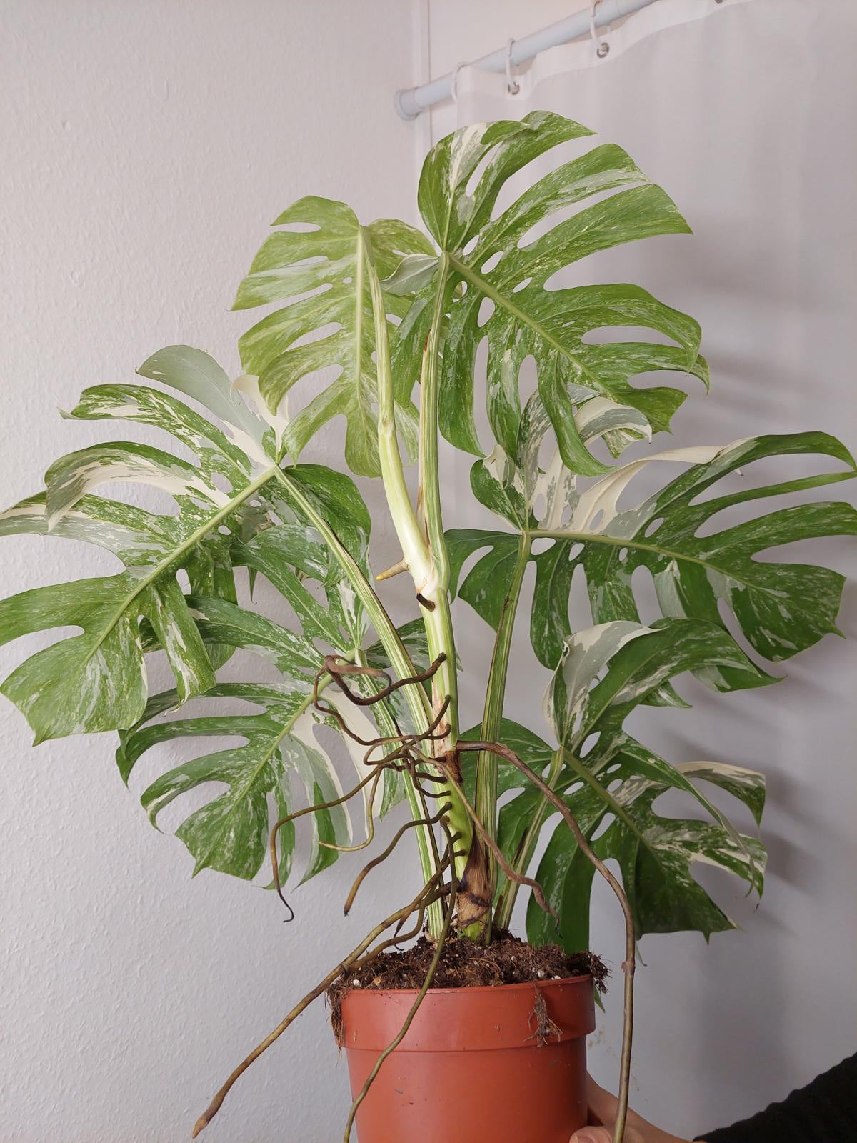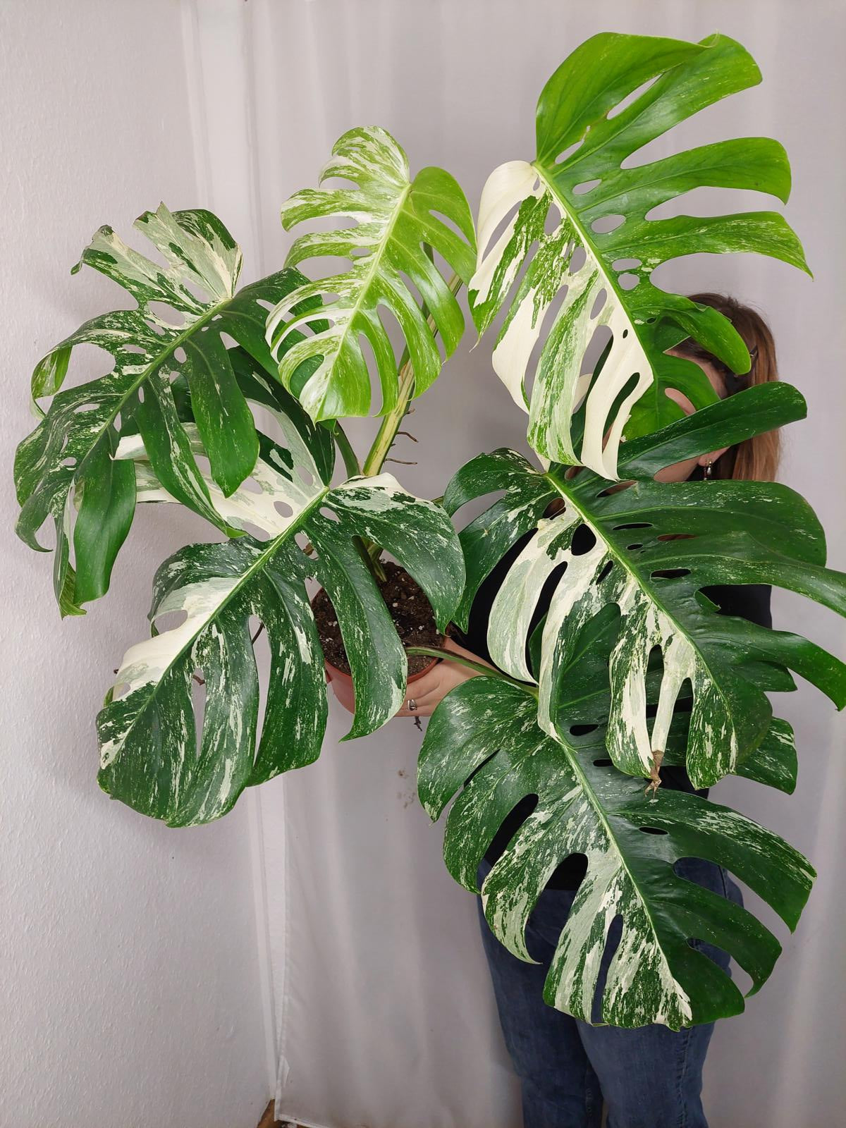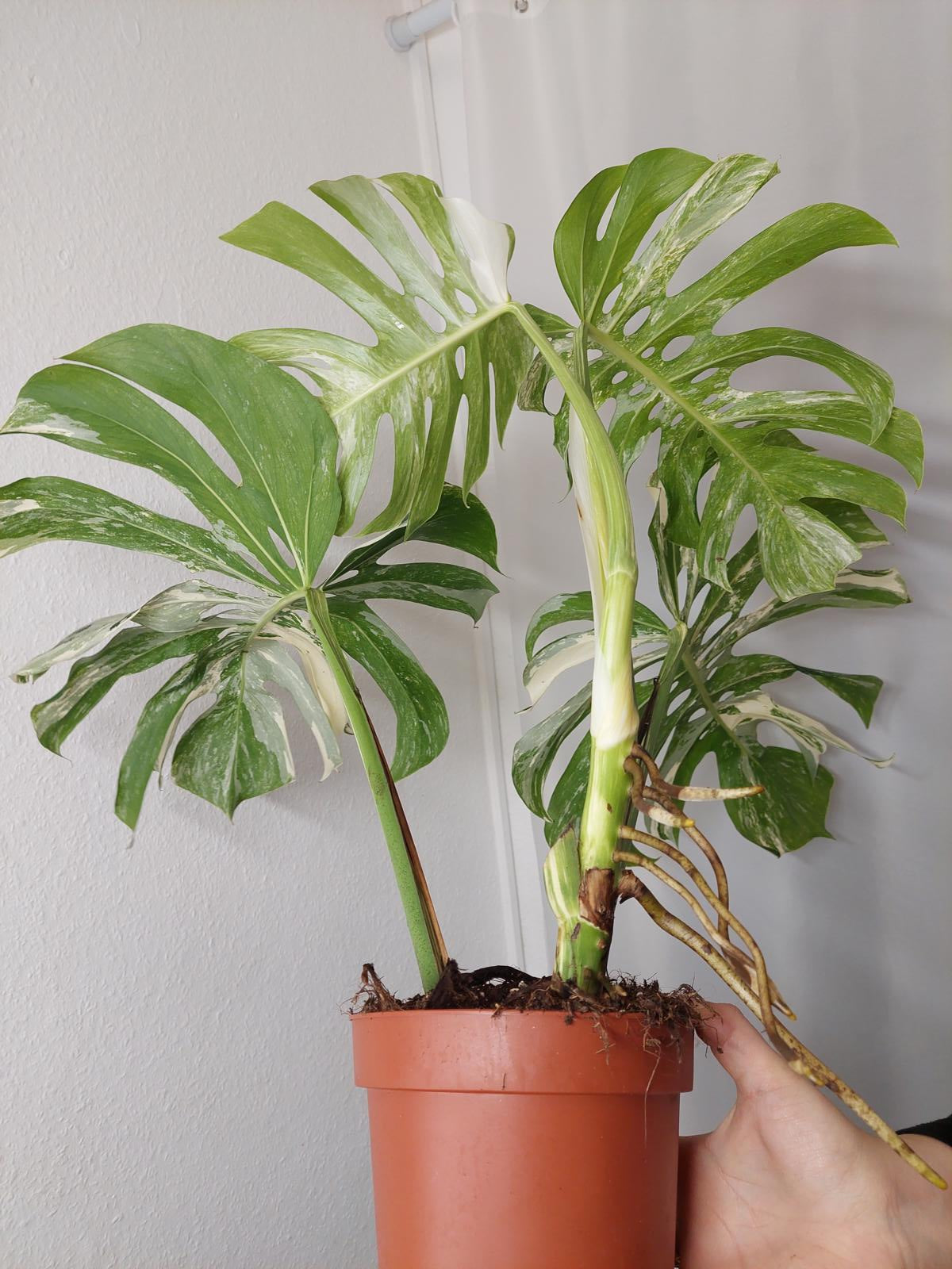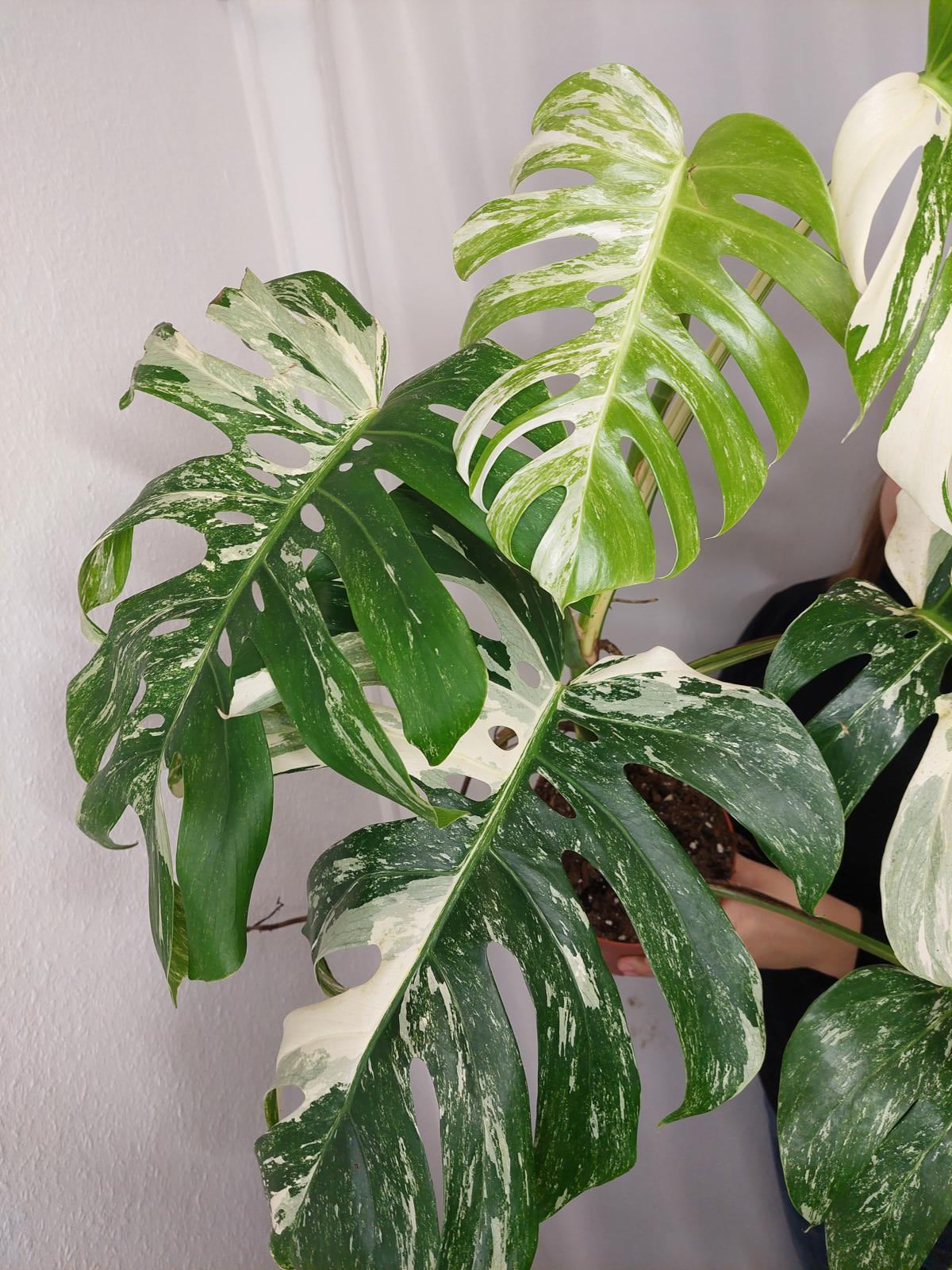Bitte beachte: Es kommt bei Blättern mit viel Panaschierung häufig vor, dass sich die weißen Stellen vor, während oder nach dem Versand braun verfärben! Man kann die Pflanzen mit einem kühleren, aber hellen Standort unterstützen. Sobald die Pflanzen sich eingelebt haben, hört das Braunwerden bei den neuen Blättern auf. Wir können keine Erstattungen für braune Stellen anbieten.