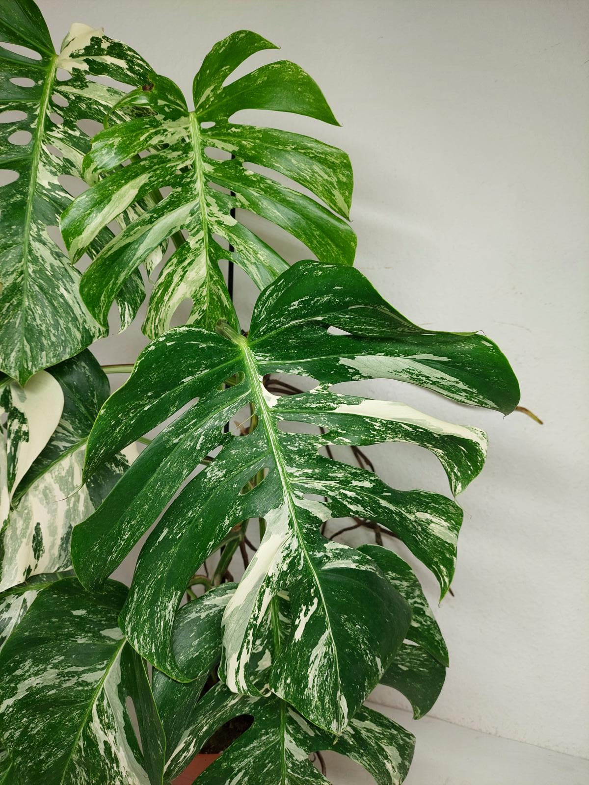 Diese einzigartige Zimmerpflanze ist ein echter Blickfang mit ihrem atemberaubenden Blattmuster. Jedes grüne Blatt ist kunstvoll mit weißer Variegation verziert, was der Pflanze einen ganz besonderen Charme verleiht.