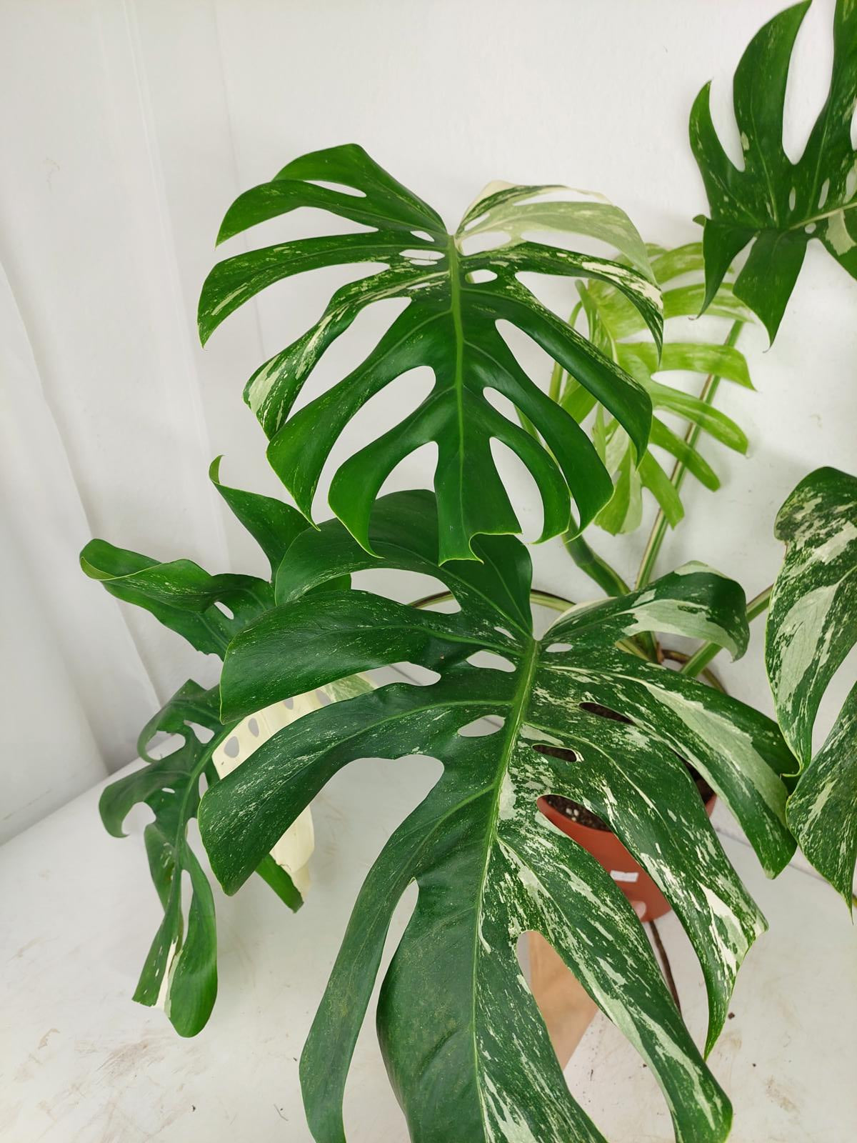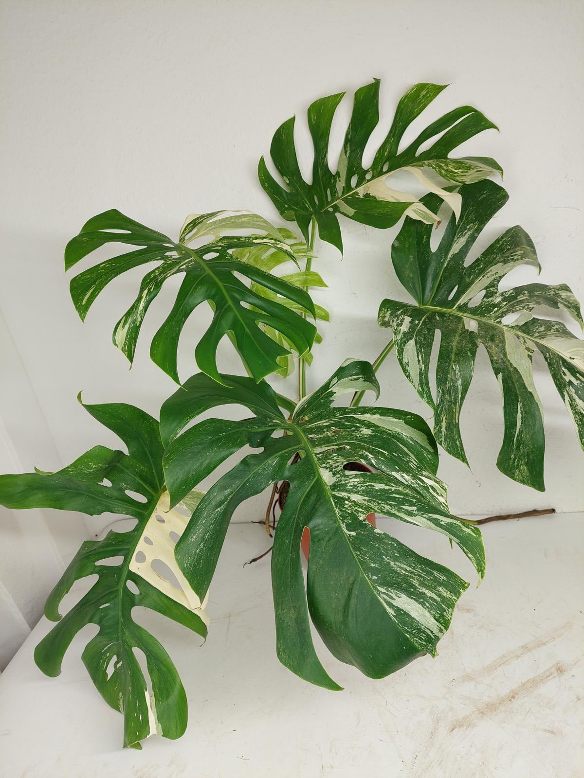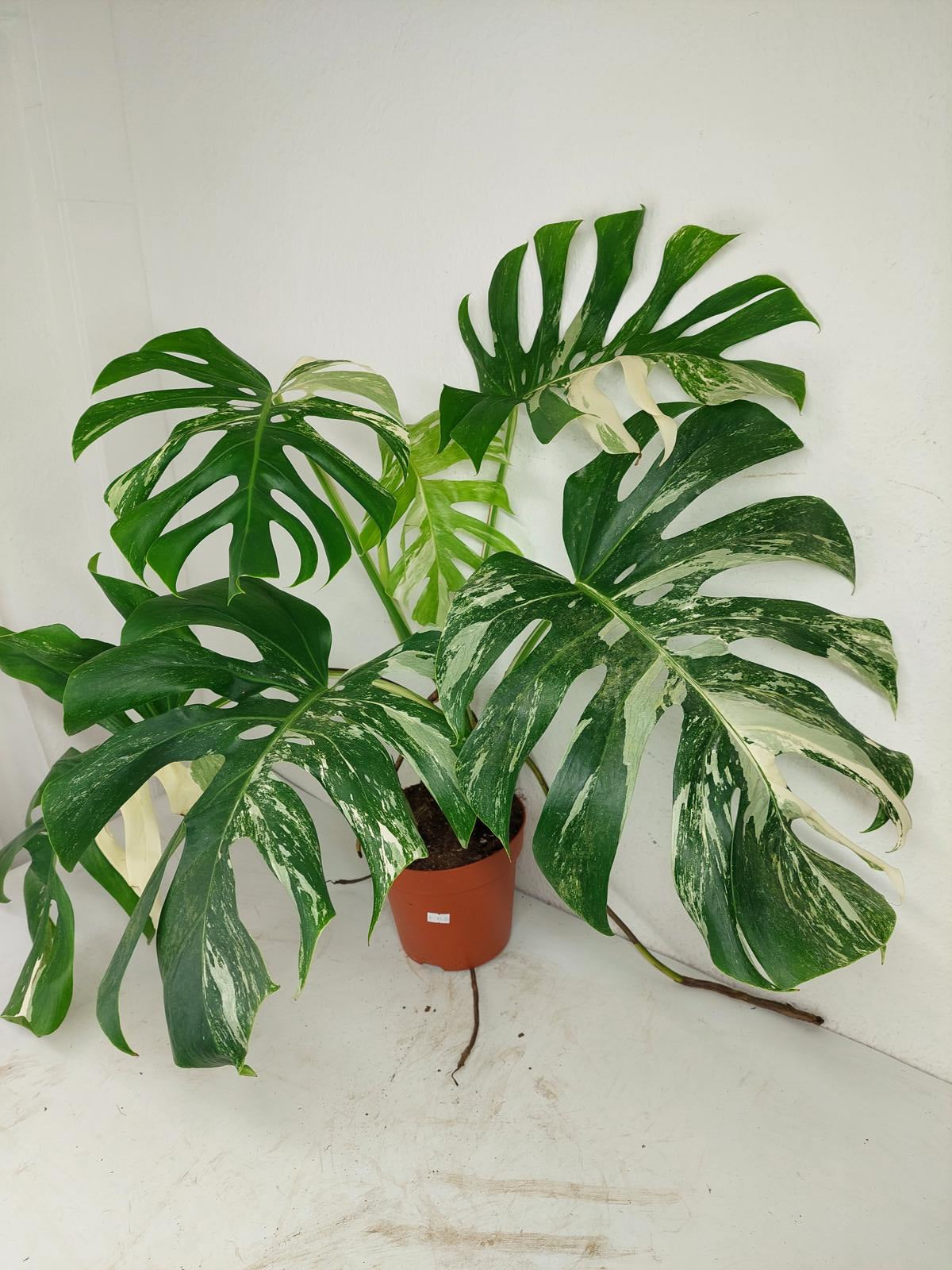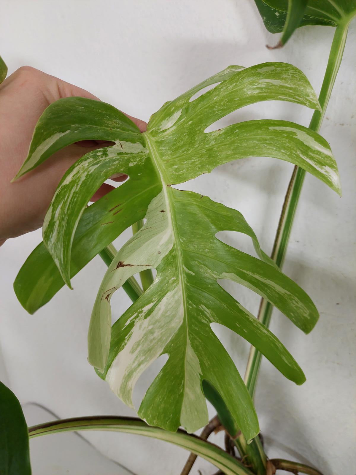 Bitte beachte: Es kommt bei Blättern mit viel Panaschierung häufig vor, dass sich die weißen Stellen vor, während oder nach dem Versand braun verfärben! Man kann die Pflanzen mit einem kühleren, aber hellen Standort unterstützen. Wir empfehlen die Zugabe von Siliziumdünger. Sobald die Pflanzen sich eingelebt haben, hört das Braunwerden bei den neuen Blättern auf. Wir können keine Erstattungen für braune Stellen anbieten.