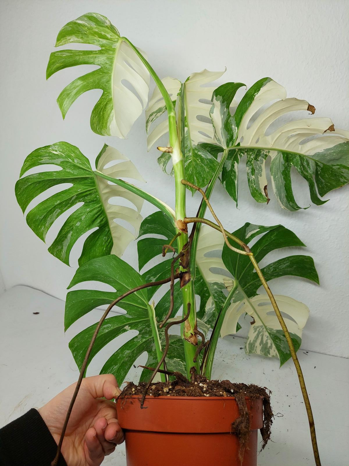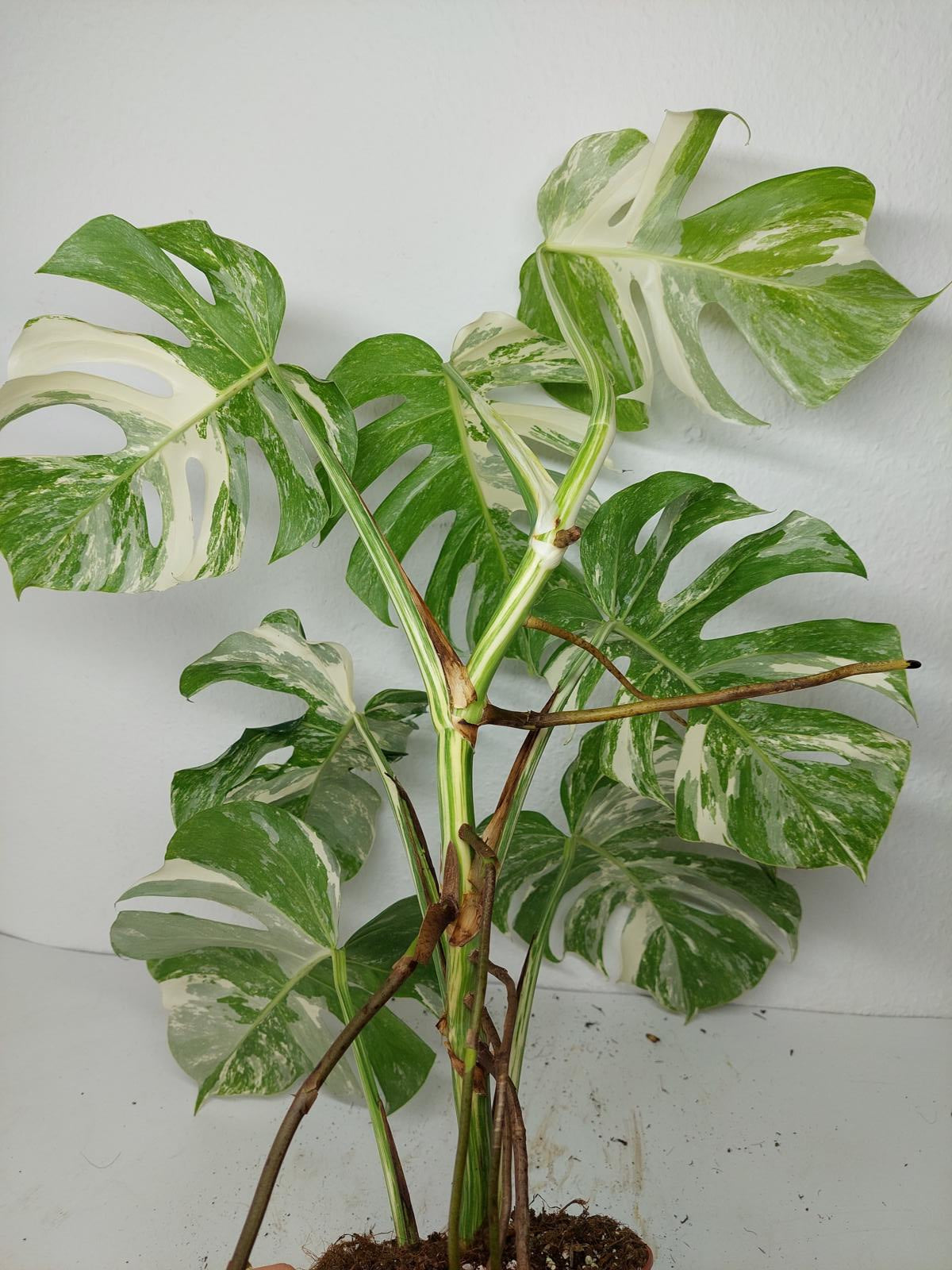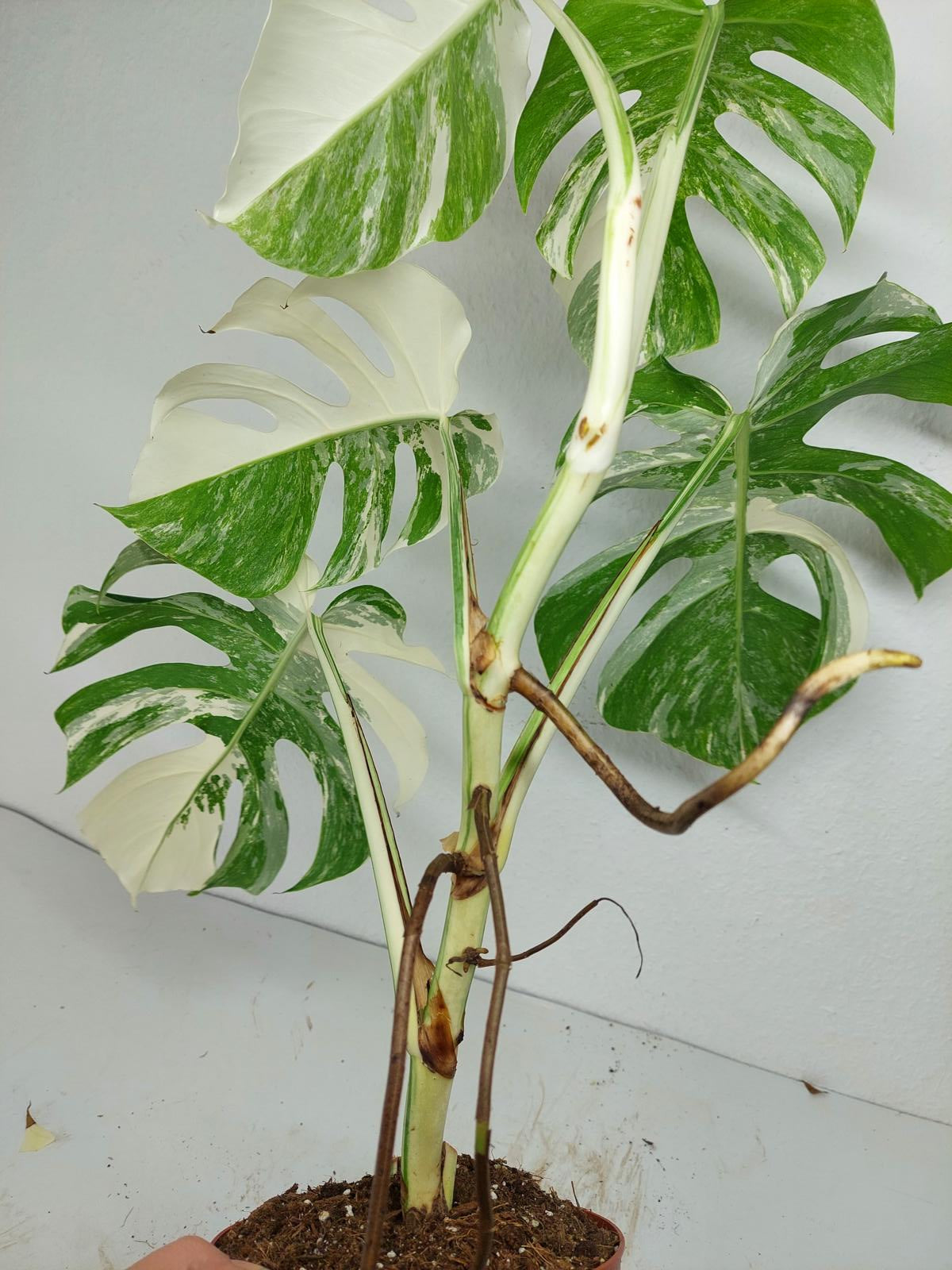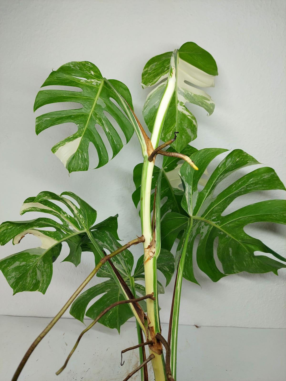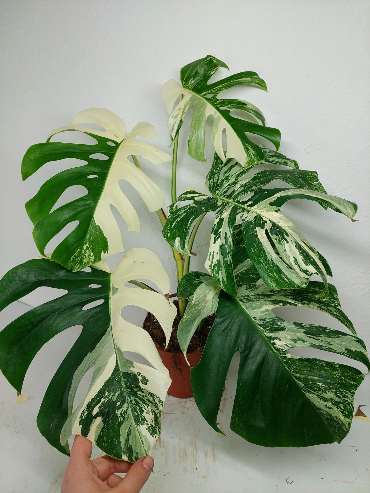Bitte beachte: Es kommt bei Blättern mit viel Panaschierung häufig vor, dass sich die weißen Stellen vor, während oder nach dem Versand braun verfärben! Man kann die Pflanzen mit einem kühleren, aber hellen Standort unterstützen. Sobald die Pflanzen sich eingelebt haben, hört das Braunwerden bei den neuen Blättern auf. Wir können keine Erstattungen für braune Stellen anbieten.