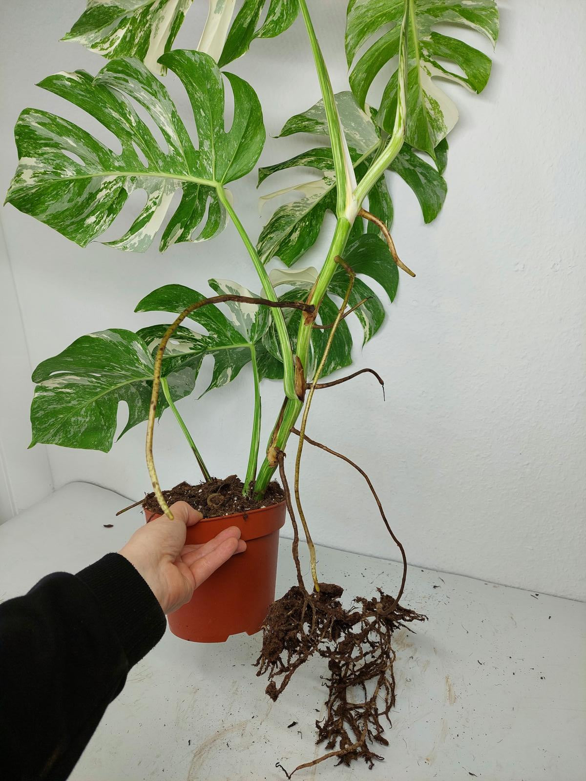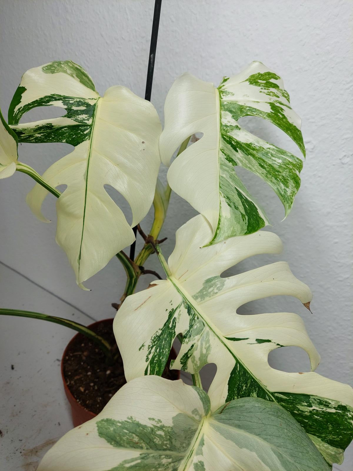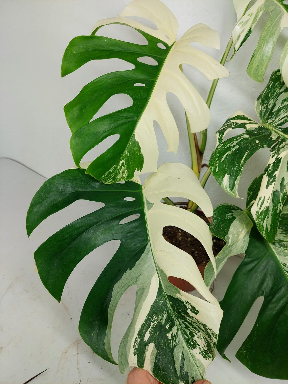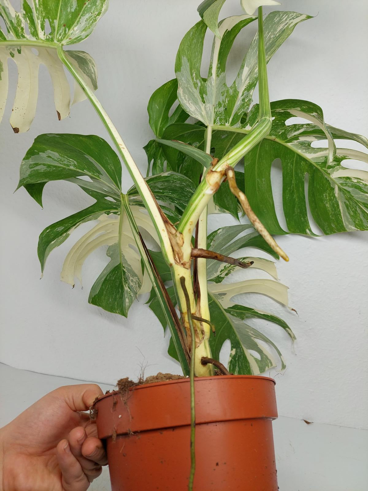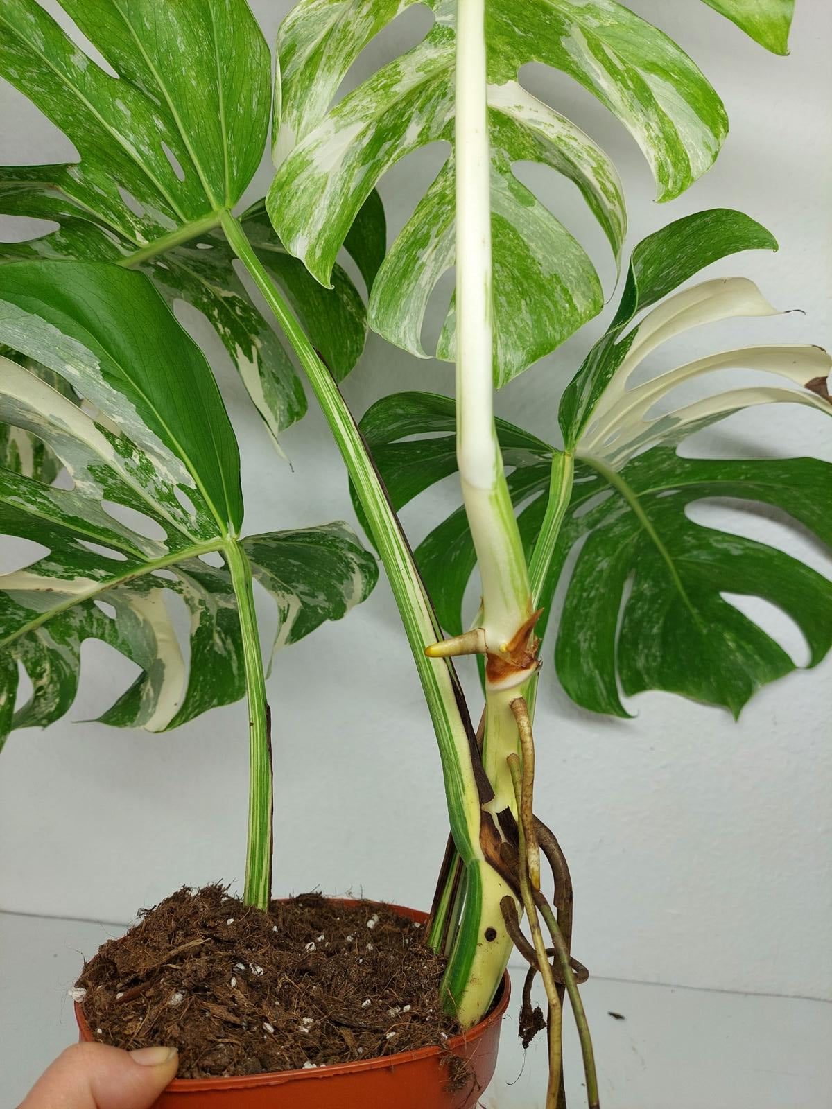 Bitte beachte: Es kommt bei Blättern mit viel Panaschierung häufig vor, dass sich die weißen Stellen vor, während oder nach dem Versand braun verfärben! Man kann die Pflanzen mit einem kühleren, aber hellen Standort unterstützen. Sobald die Pflanzen sich eingelebt haben, hört das Braunwerden bei den neuen Blättern auf. Wir können keine Erstattungen für braune Stellen anbieten.
