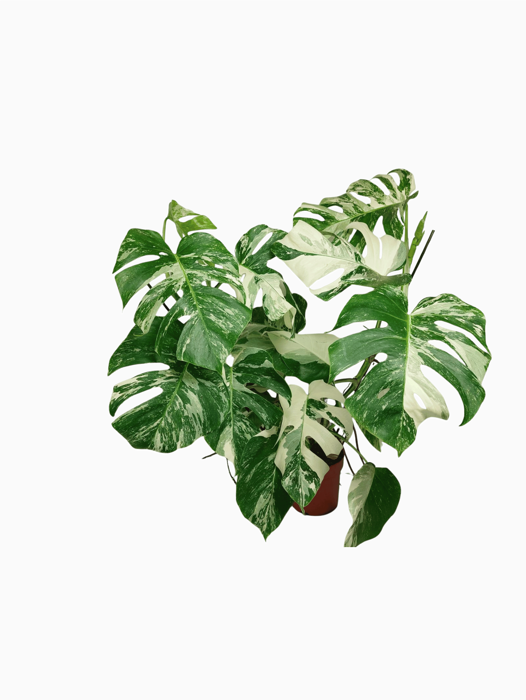 Diese einzigartige Zimmerpflanze ist ein echter Blickfang mit ihrem atemberaubenden Blattmuster. Jedes grüne Blatt ist kunstvoll mit weißer Variegation verziert, was der Pflanze einen ganz besonderen Charme verleiht. Es handelt sich um die Monstera Borsigiana.
