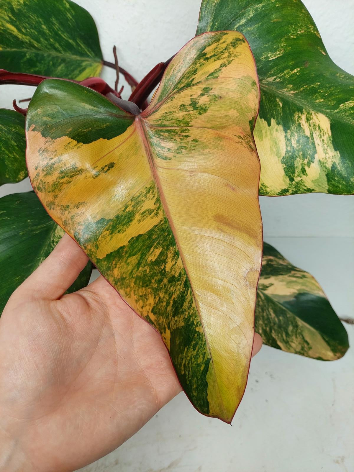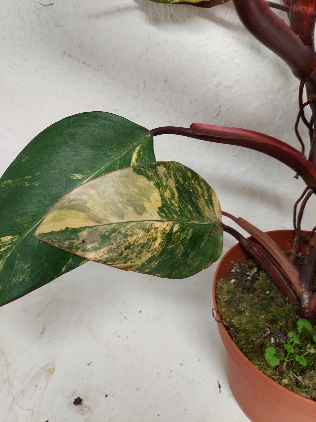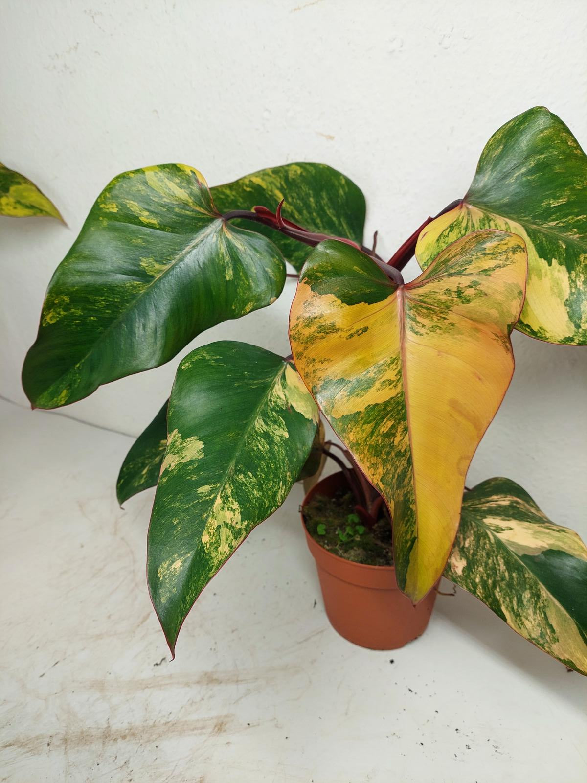 Bitte beachte: Es kommt bei Blättern mit viel Panaschierung häufig vor, dass sich die panaschierten Stellen vor, während oder nach dem Versand braun verfärben! Man kann die Pflanzen mit einem kühleren, aber hellen Standort unterstützen. Sobald die Pflanzen sich eingelebt haben, hört das Braunwerden bei den neuen Blättern auf.