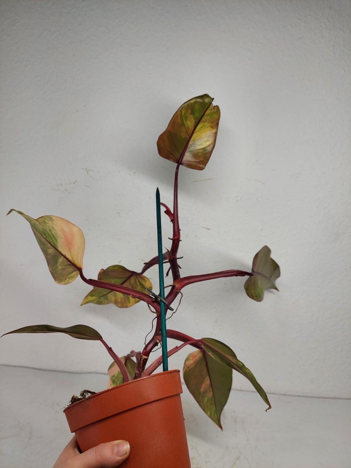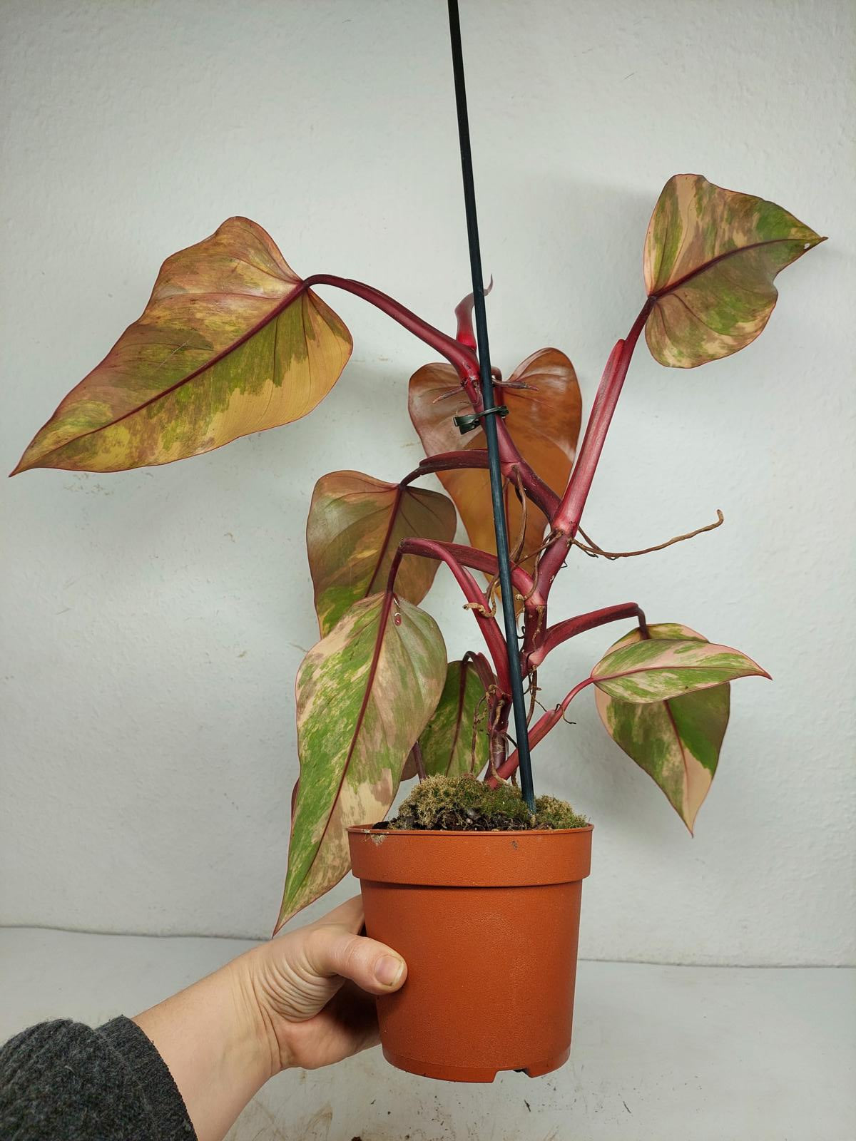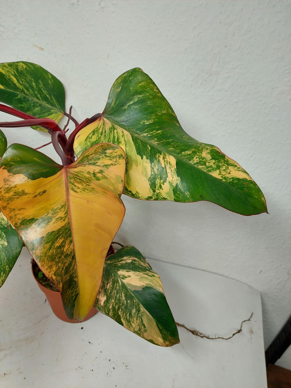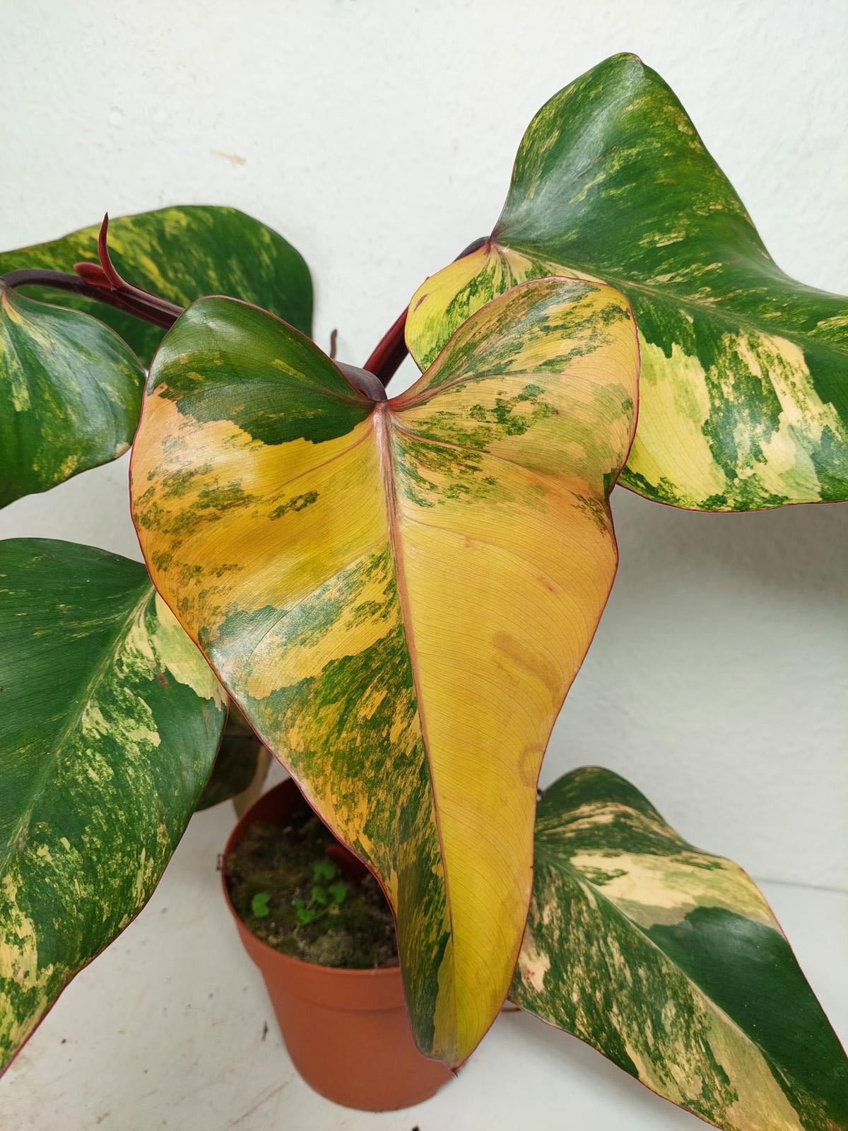 Bitte beachte: Es kommt bei Blättern mit viel Panaschierung häufig vor, dass sich die panaschierten Stellen vor, während oder nach dem Versand braun verfärben! Man kann die Pflanzen mit einem kühleren, aber hellen Standort unterstützen. Sobald die Pflanzen sich eingelebt haben, hört das Braunwerden bei den neuen Blättern auf.