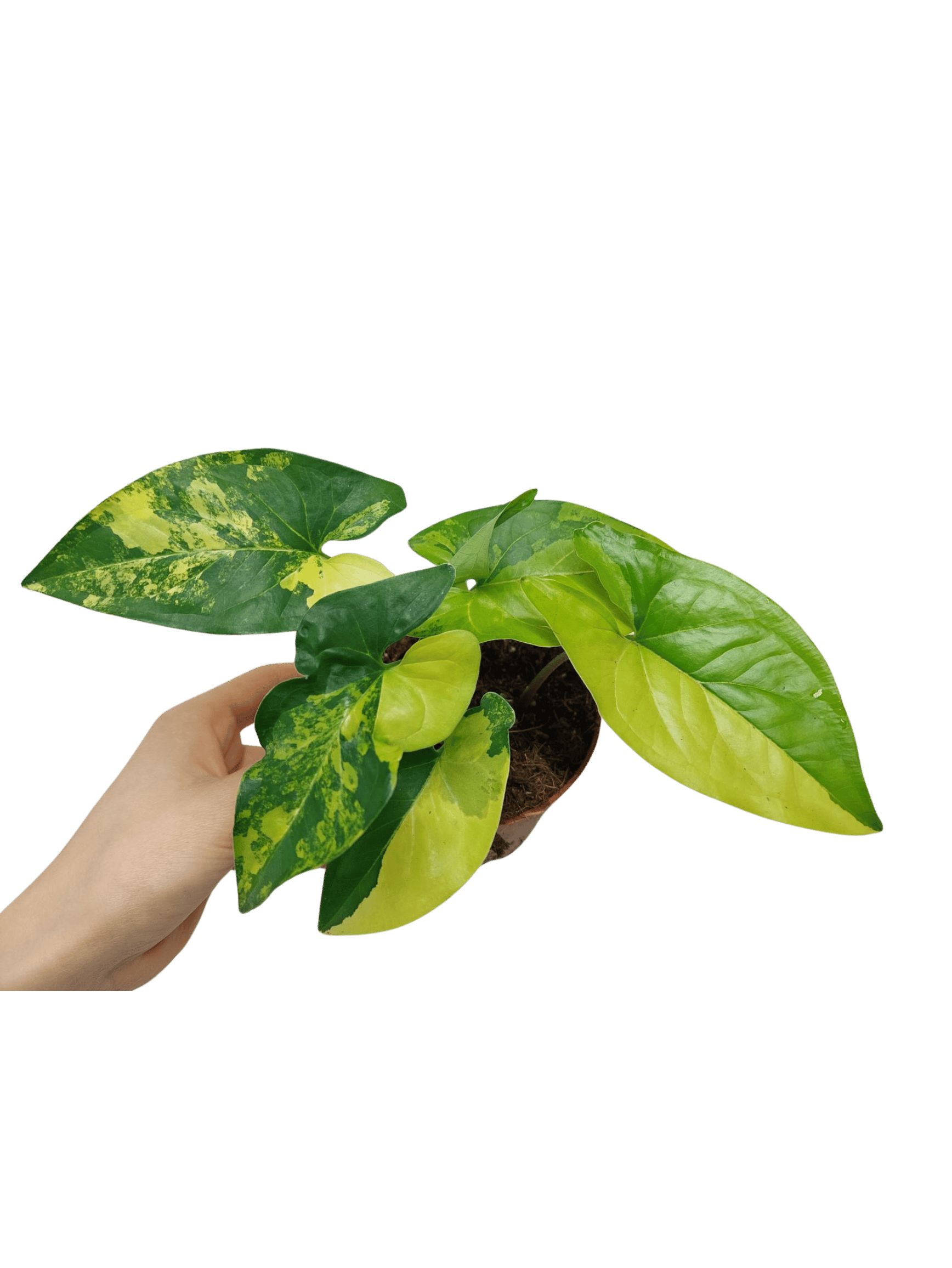 Ein faszinierendes Muster aus Limonengrün, Marmorgelb und Waldgrün ziert die Blätter dieser Rarität. Dies liegt an seiner sehr einzigartigen Panaschierung, die auf neuen Blättern grün beginnt und mit der Zeit zu Gelb übergeht.